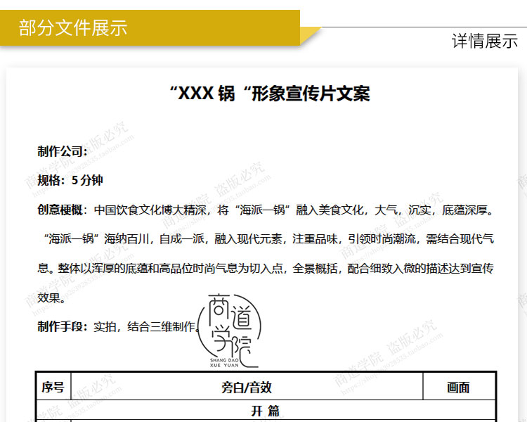 建筑装饰公司餐饮行业汽车金融光伏企业旅游景区宣传片脚本方案例