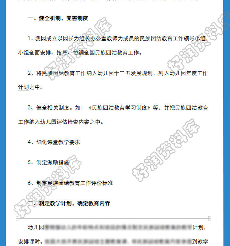 幼儿园民族团结工作活动方案模板民族团结工作计划活动总结资料